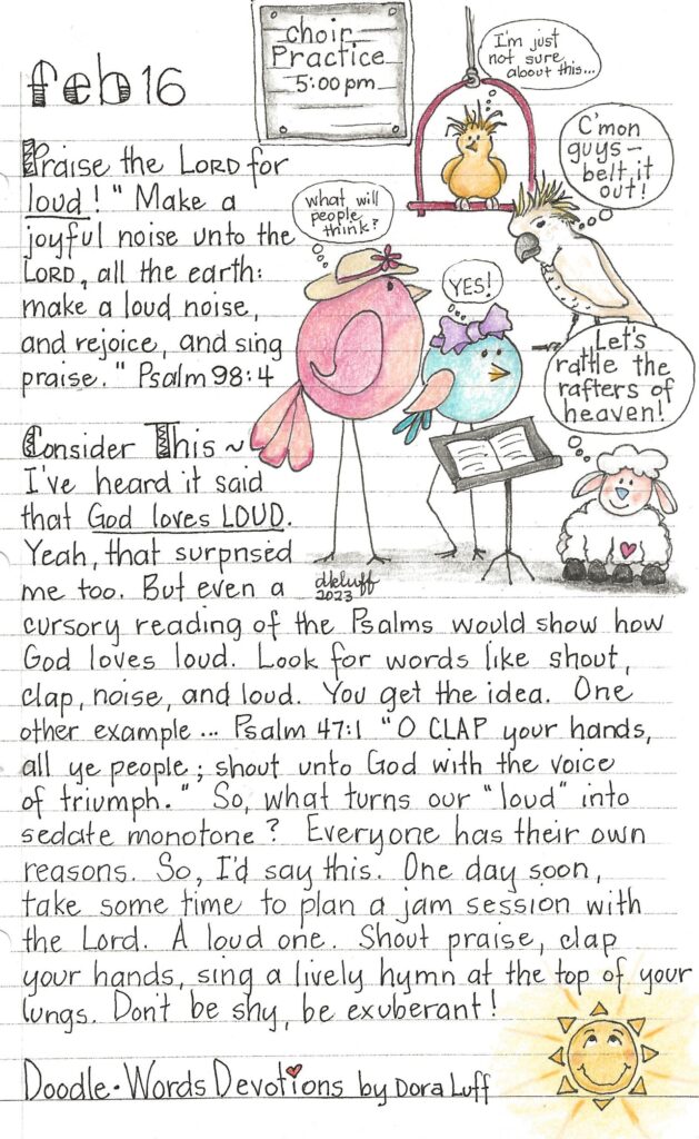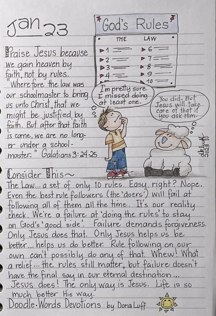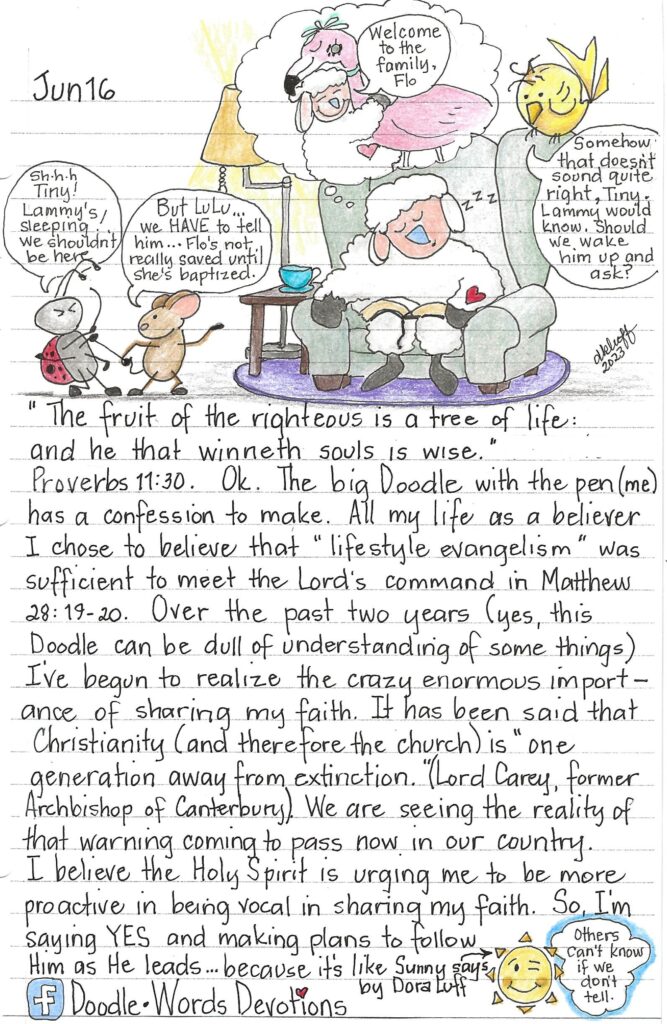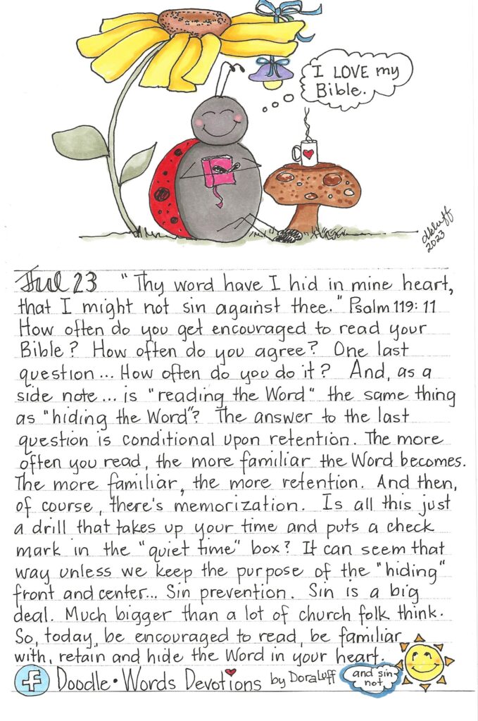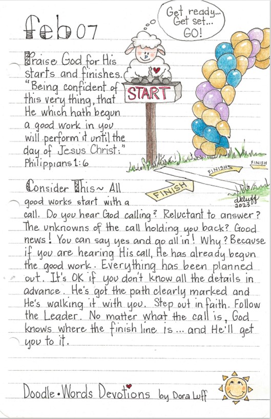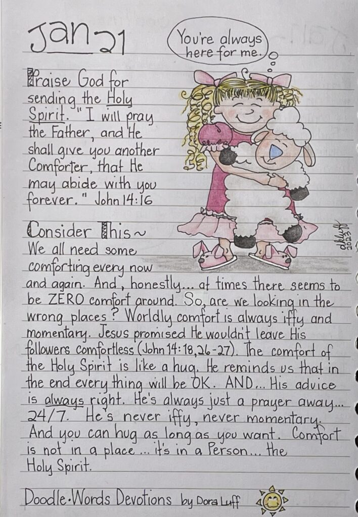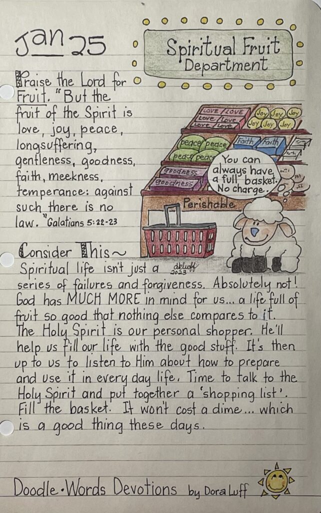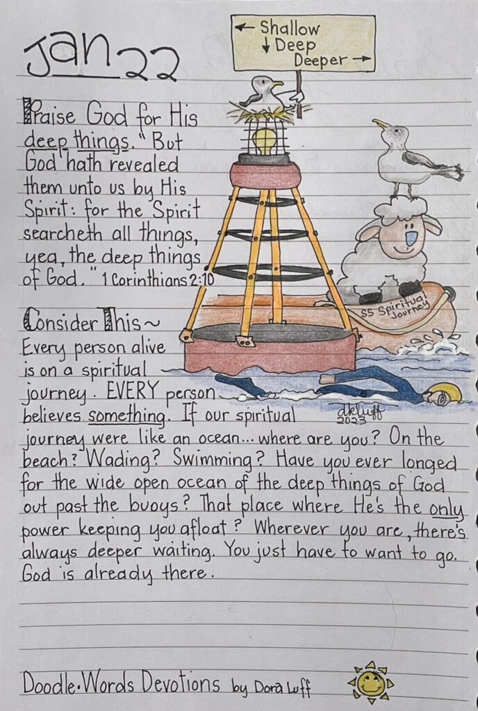 Doodle Words Devotions is written and drawn by Mrs. Dora Luff, a member here at Central Baptist Church. What began as a simple, daily devotional for a few of her friends quickly began to be used by God to help others grow and see God in a whole new light.
