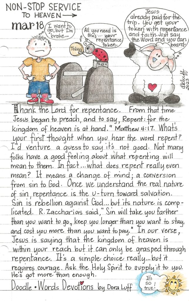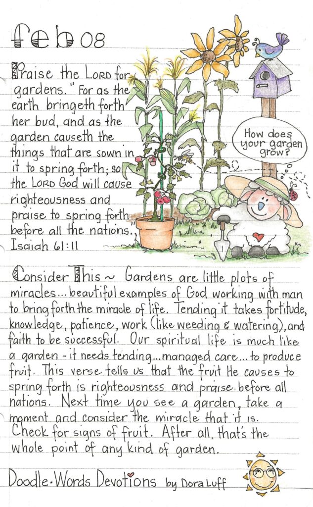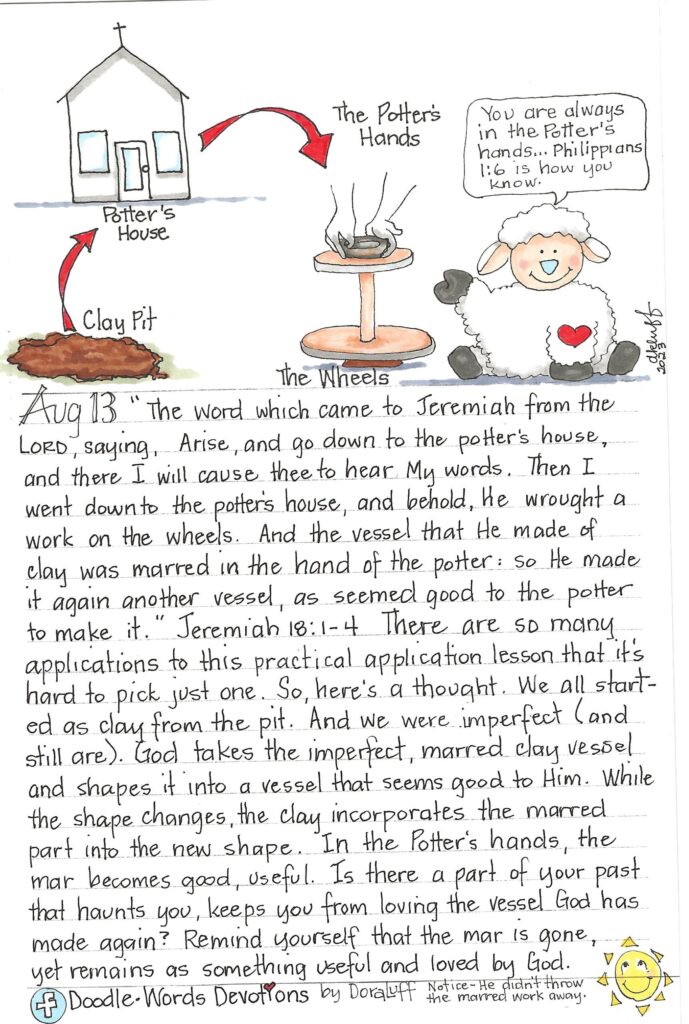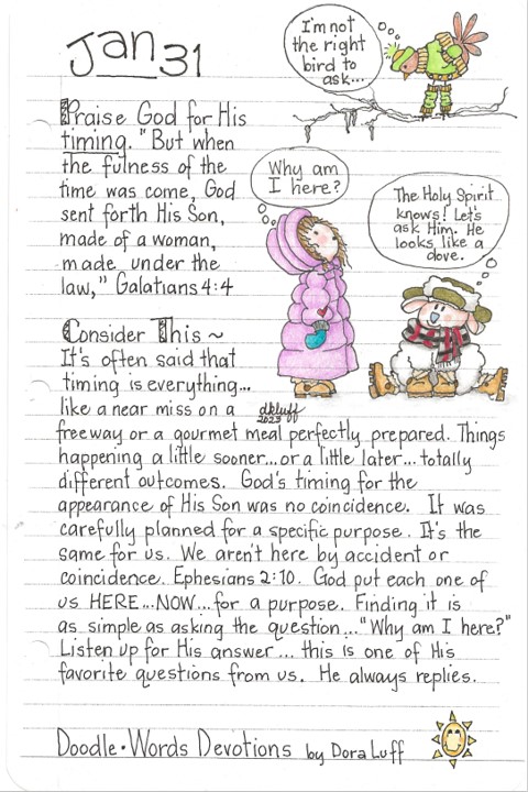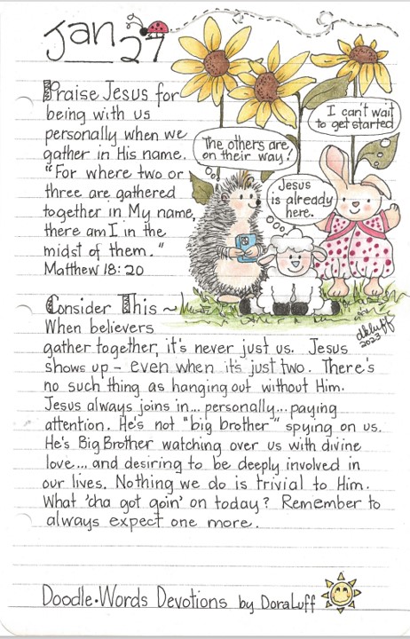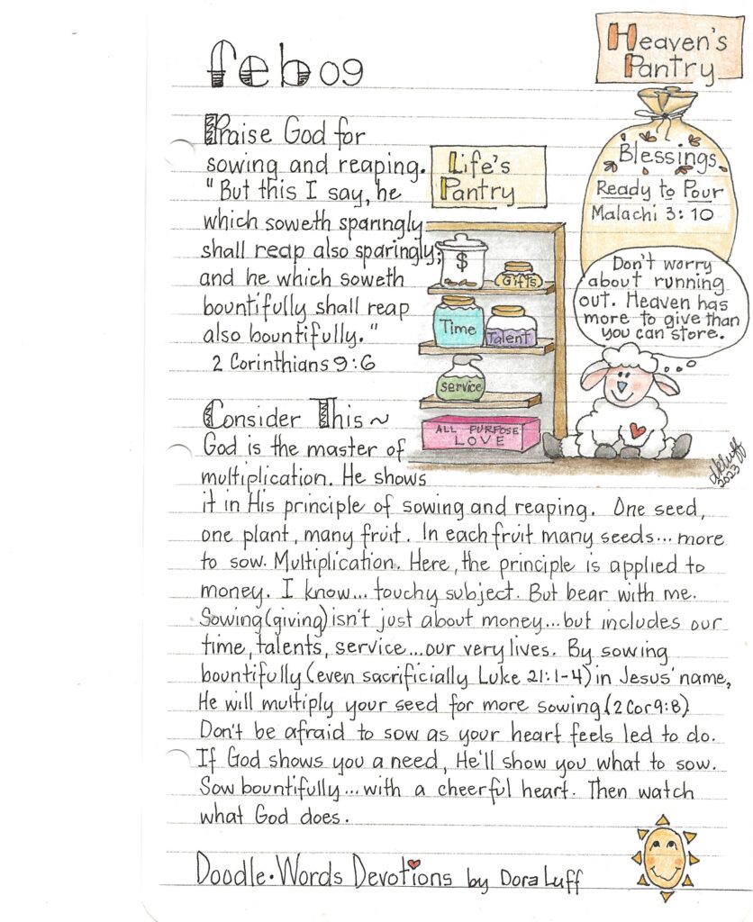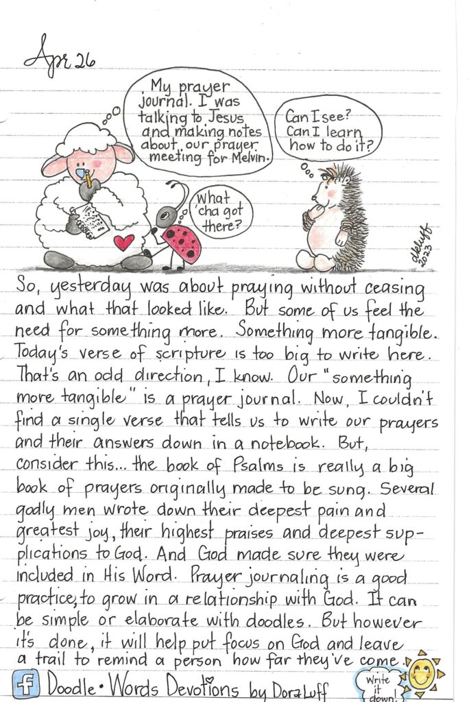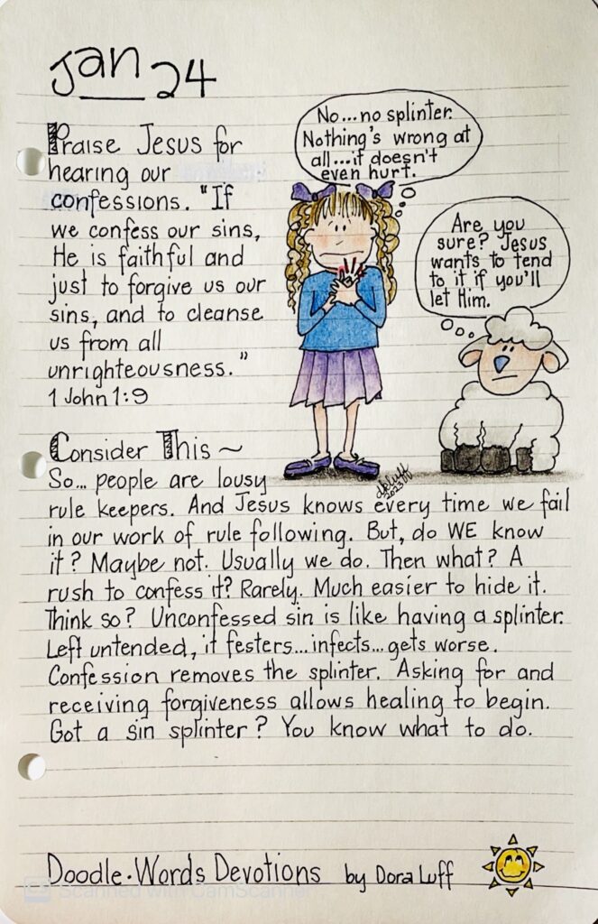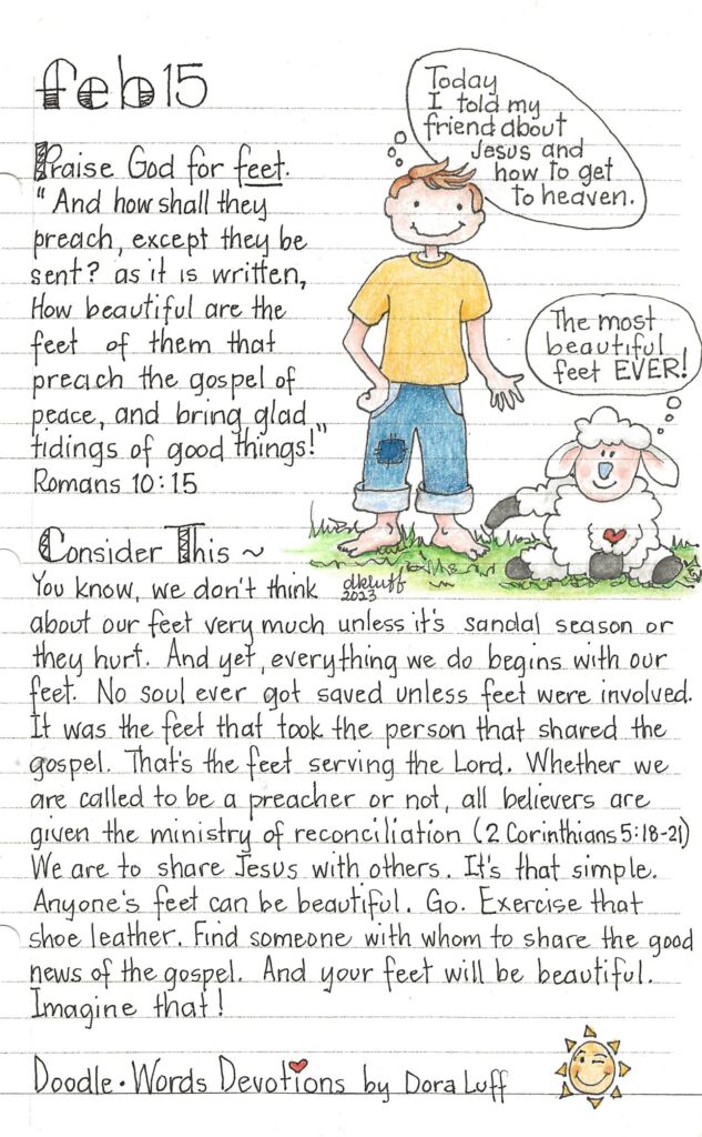 Doodle Words Devotions is written and drawn by Mrs. Dora Luff, a member here at Central Baptist Church. What began as a simple, daily devotional for a few of her friends quickly began to be used by God to help others grow and see God in a whole new light.