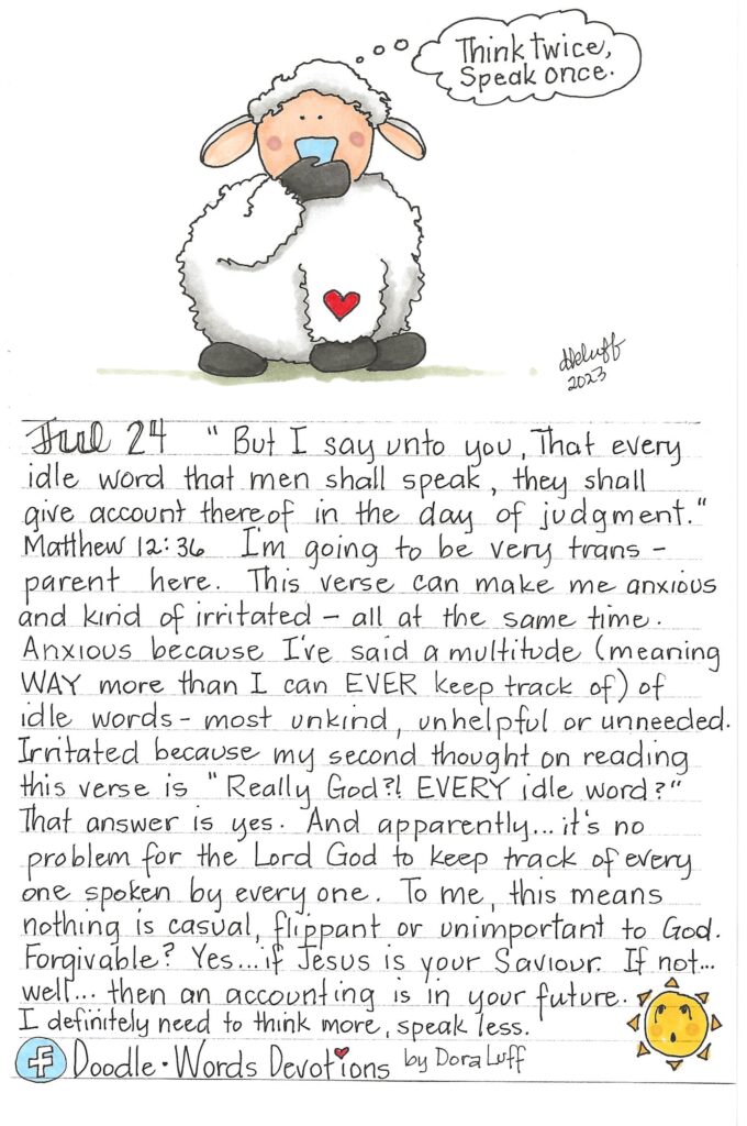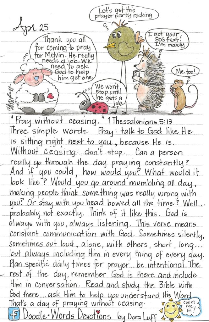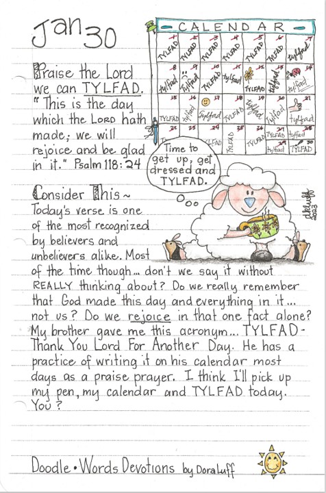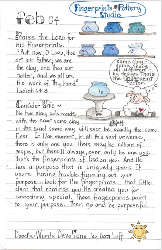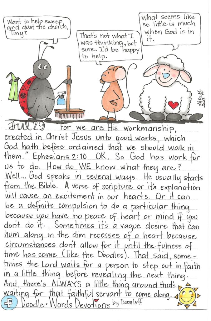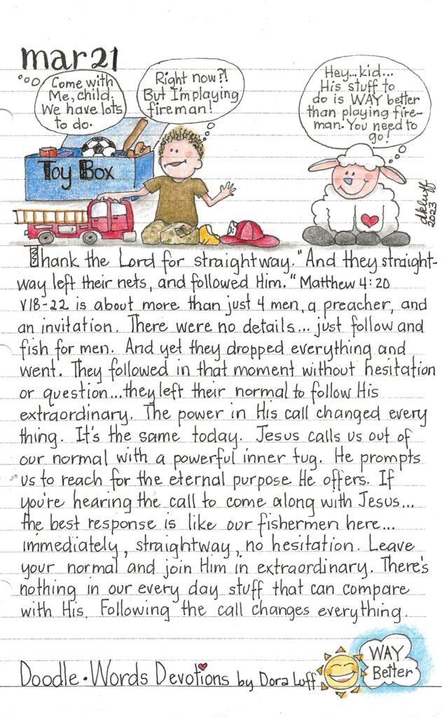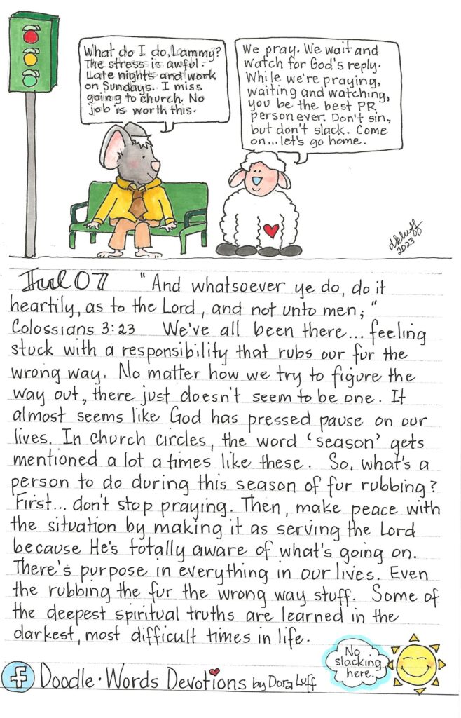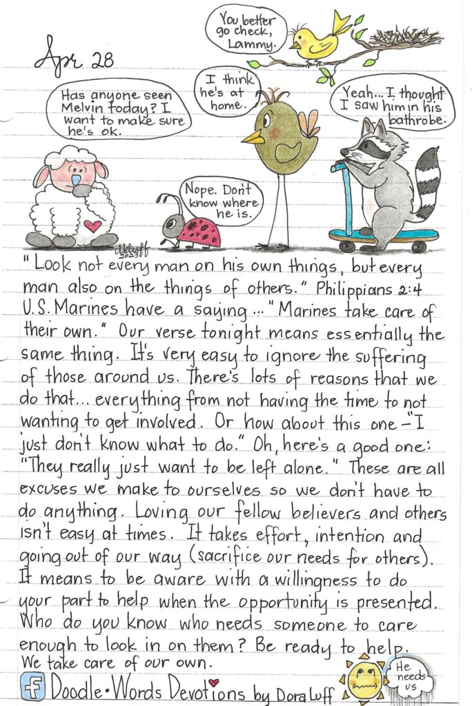 Doodle Words Devotions is written and drawn by Mrs. Dora Luff, a member here at Central Baptist Church. What began as a simple, daily devotional for a few of her friends quickly began to be used by God to help others grow and see God in a whole new light.