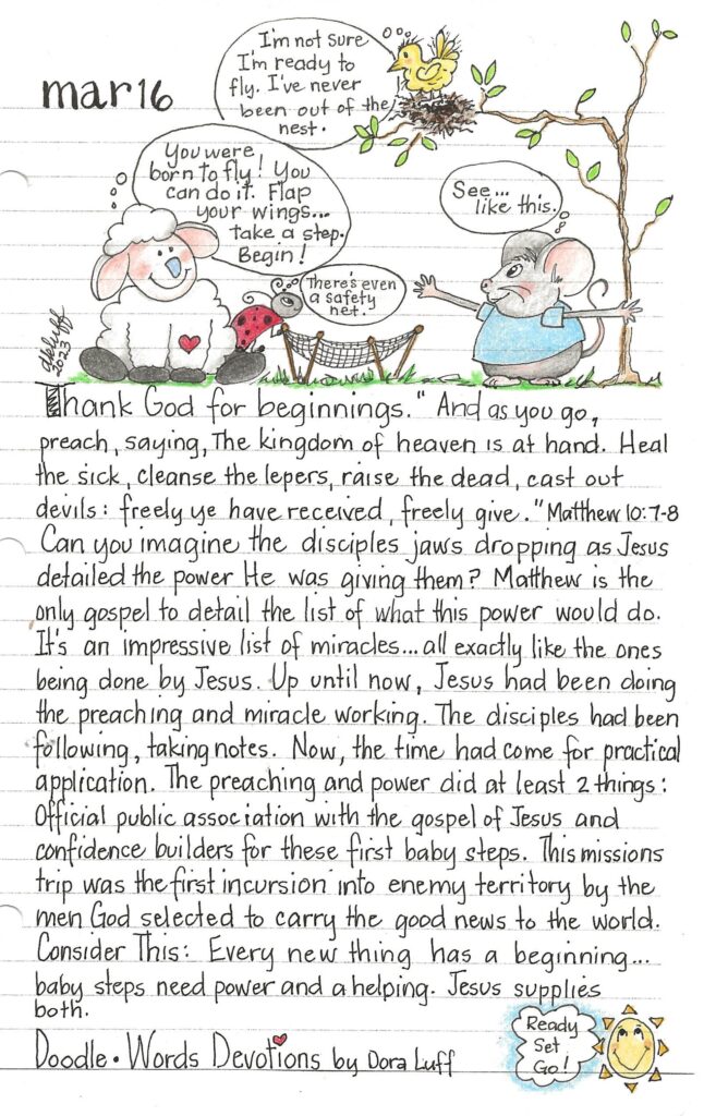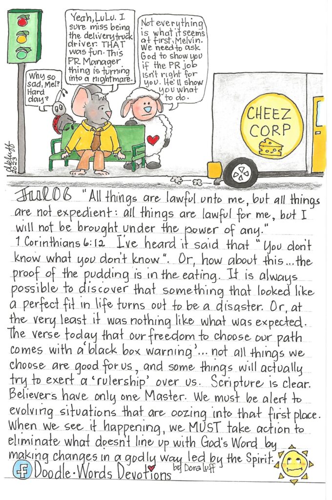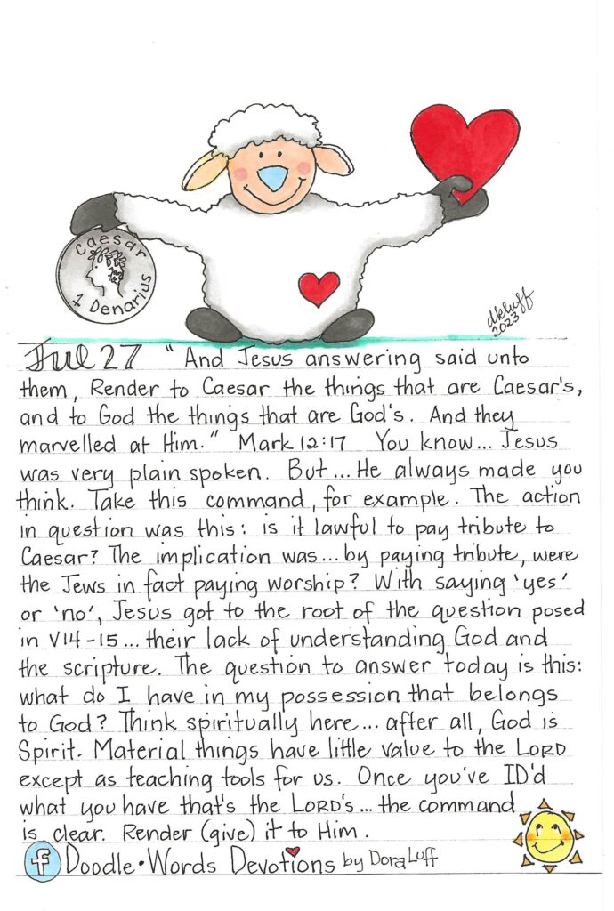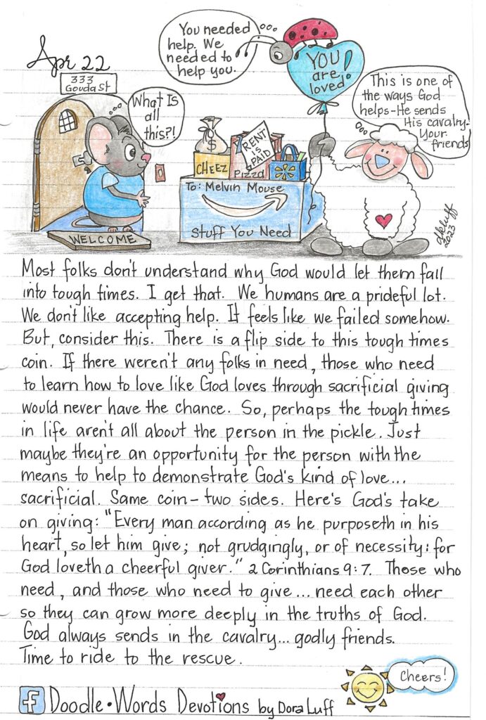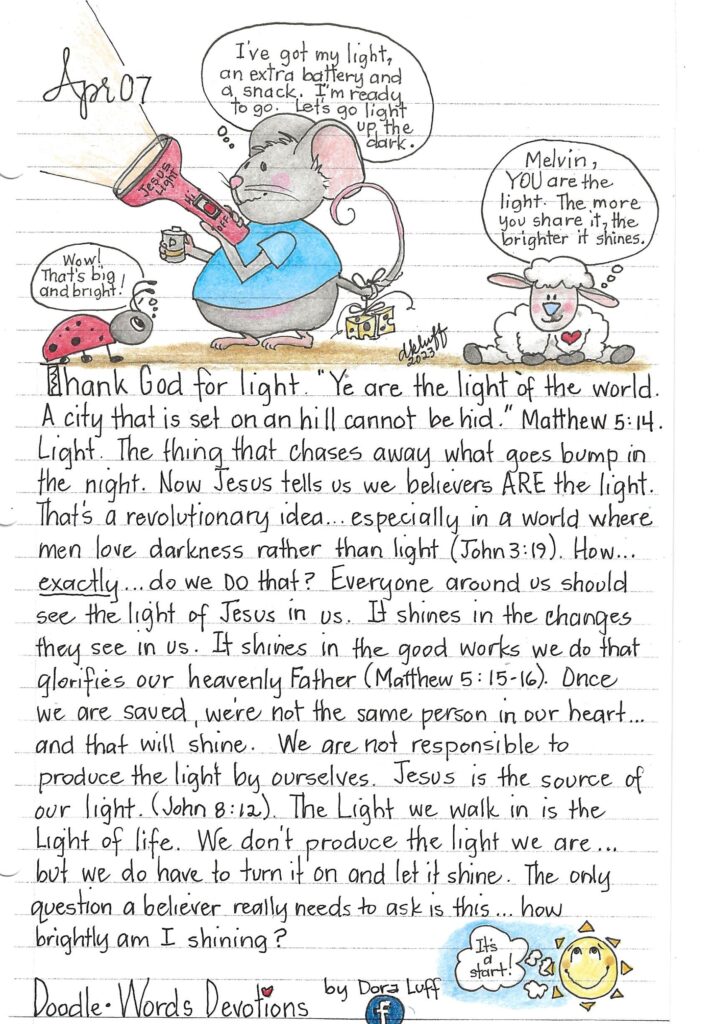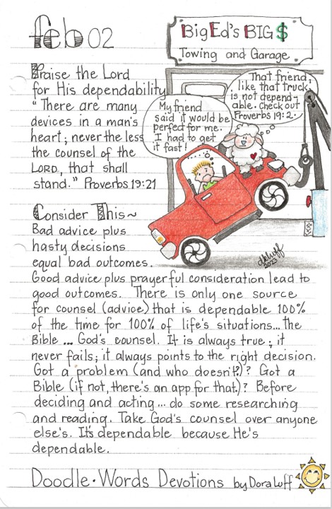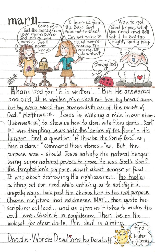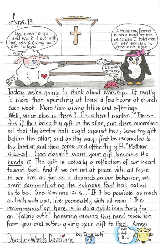 Doodle Words Devotions is written and drawn by Mrs. Dora Luff, a member here at Central Baptist Church. What began as a simple, daily devotional for a few of her friends quickly began to be used by God to help others grow and see God in a whole new light.