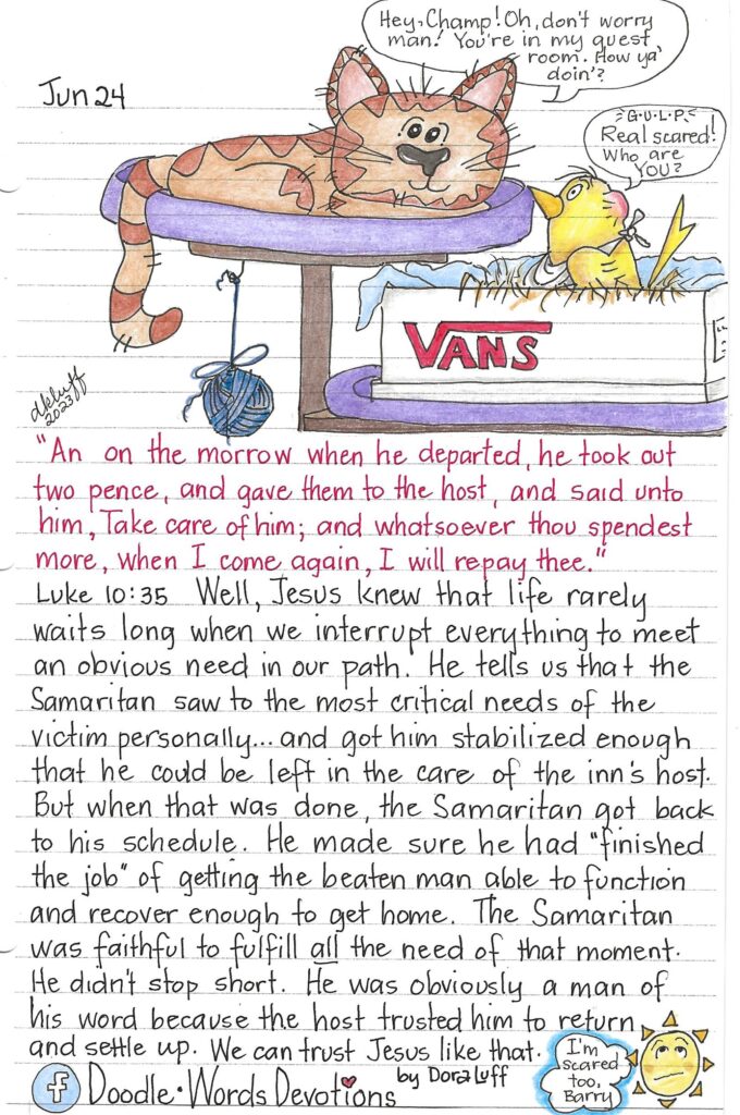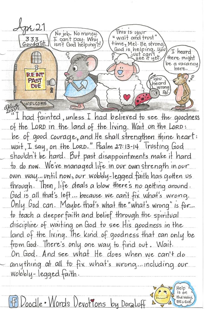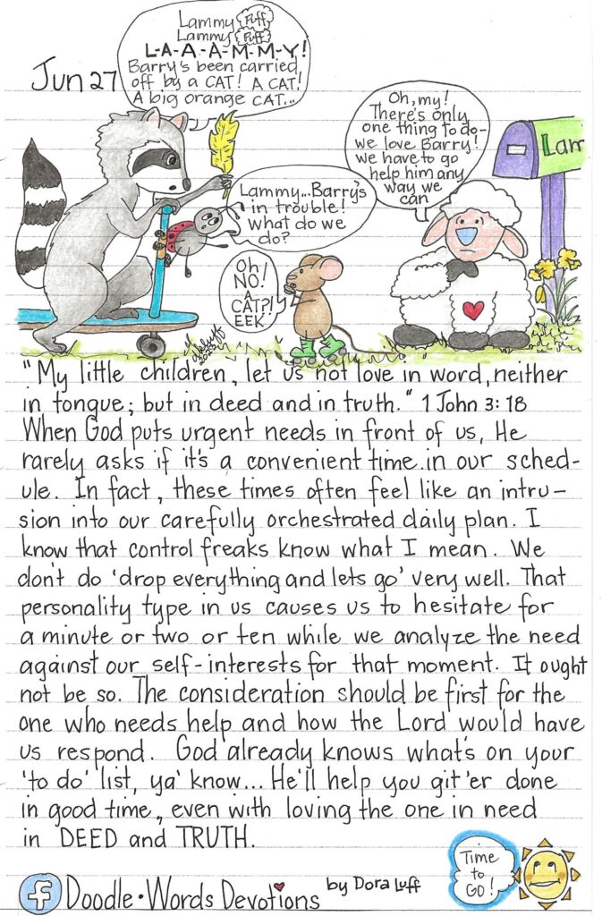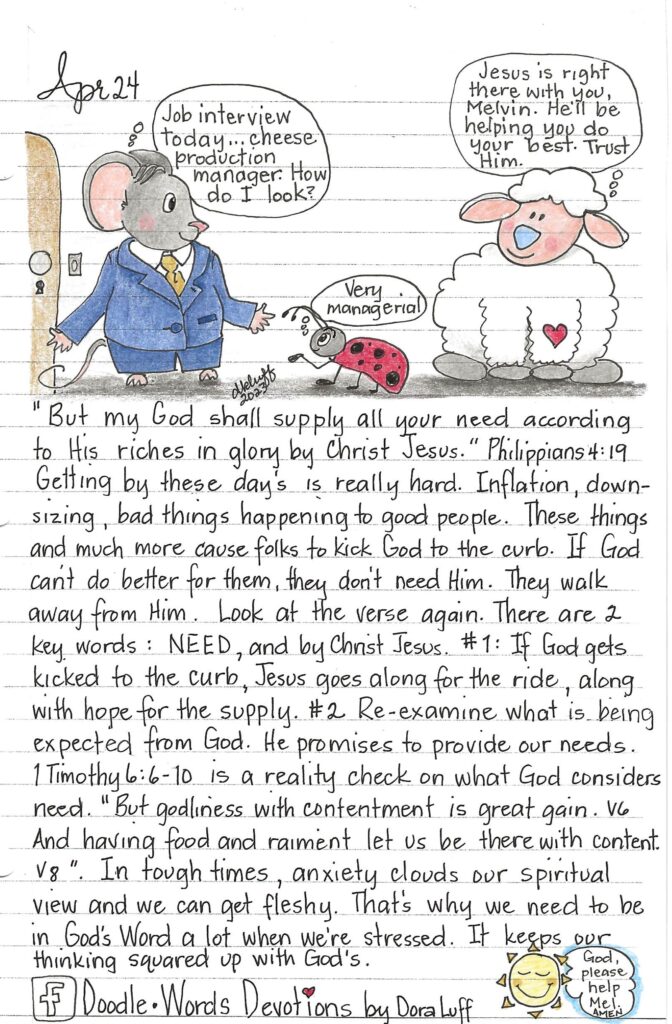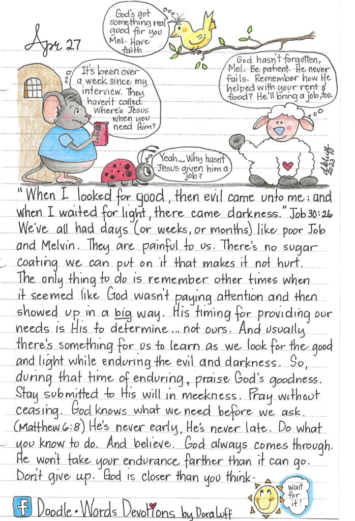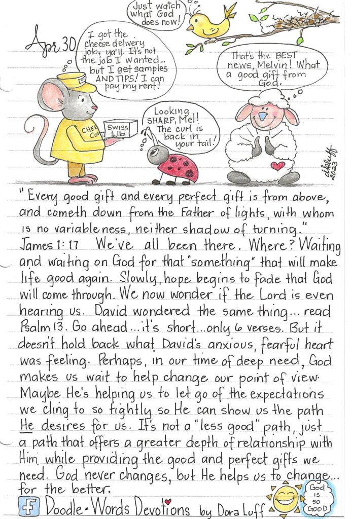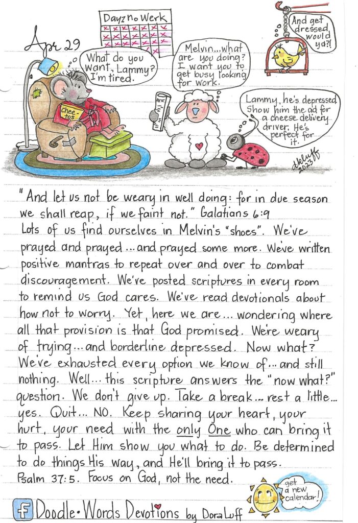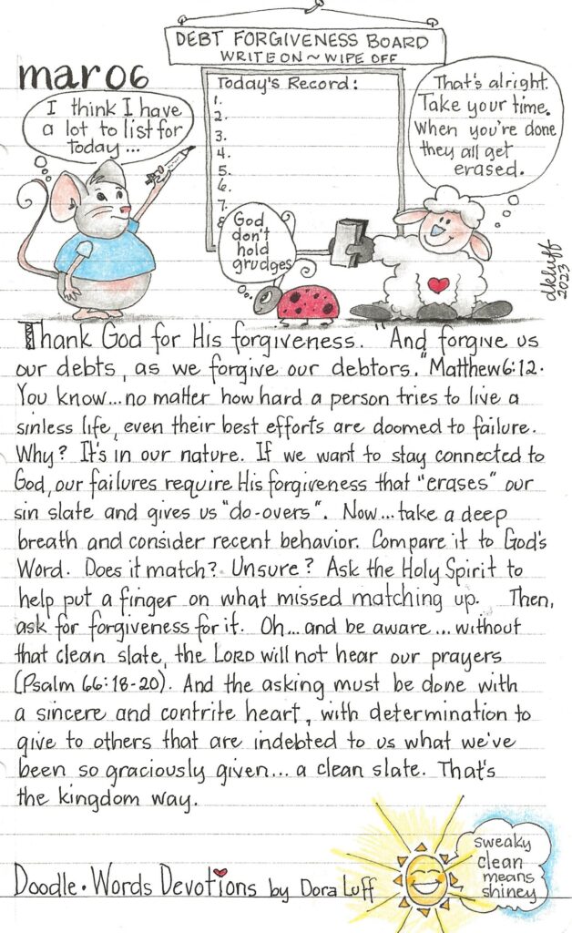Doodle Words Devotions is written and drawn by Mrs. Dora Luff, a member here at Central Baptist Church. What began as a simple, daily devotional for a few of her friends quickly began to be used by God to help others grow and see God in a whole new light.